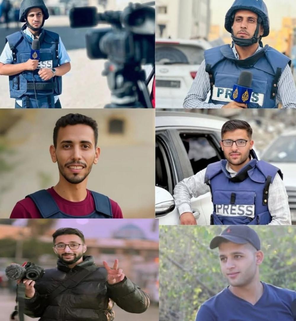 نعت فصائل المقاومة الفلسطينية إلى جماهير سعبنا الفلسطيني وأمتنا العربية والإسلامية شهداء الإعلام والإنسانية والأسرة الصحفية الفلسطينية الذي ارتقوا باستهداف خيمة قناة الجزيرة في محيط مستشفى الشفاء غربي مدينة غزة.