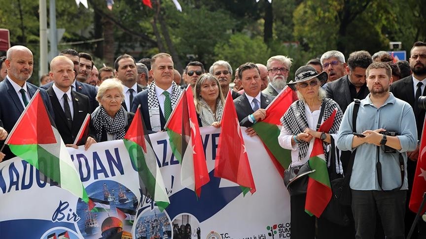 شهدت ولاية موغلا جنوب غربي تركيا وقفة لدعم "أسطول الصمود العالمي" الذي يبحر في المتوسط في طريقه إلى غزة لإيصال المساعدات الإنسانية.