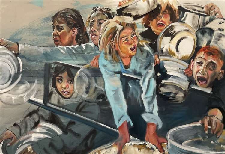 بالنسبة للفنانين، فإن المعرض هو فرصة لهم لمشاركة مشاعرهم حول العجز الذي شعروا به خلال ما يعتبرونه إبادة جماعية في غزة.