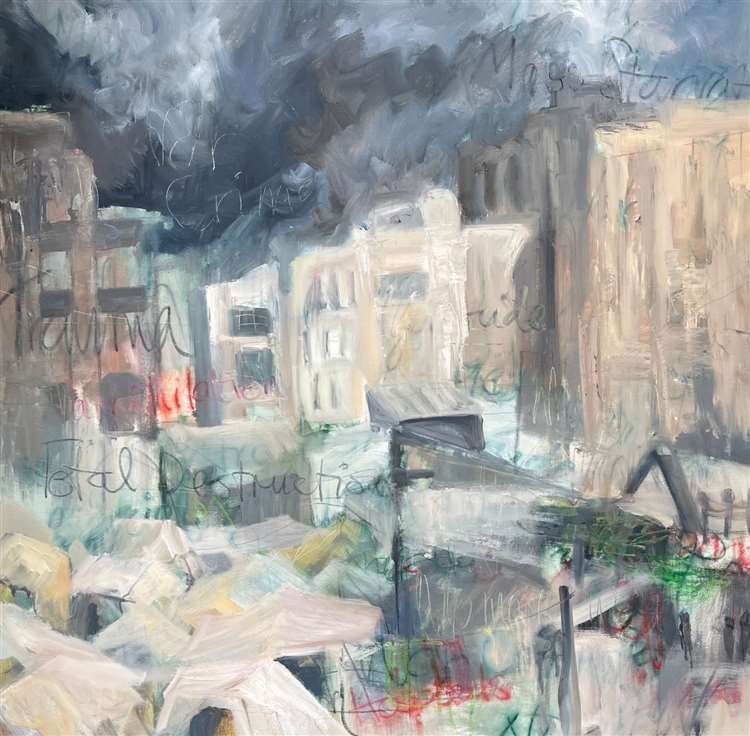 فبعد أن قاموا بالرسم والتلوين حول الحرب على مدى العامين الماضيين، تمكن إيان وجيني ودوت من جمع أعمالهم معًا للعرض في إيدن كورت.