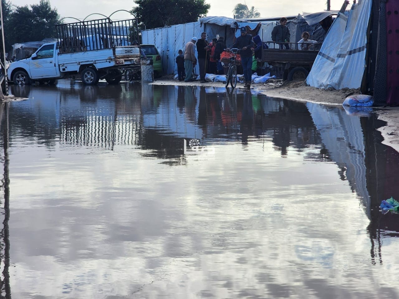 ومنذ يومين تتأثر فلسطين بمنخفض جوي وتساقط غزير للأمطار التي تسببت بغرق خيام للنازحين في عدة مناطق في قطاع غزة المدمر بفعل حرب الإبادة الجماعية.