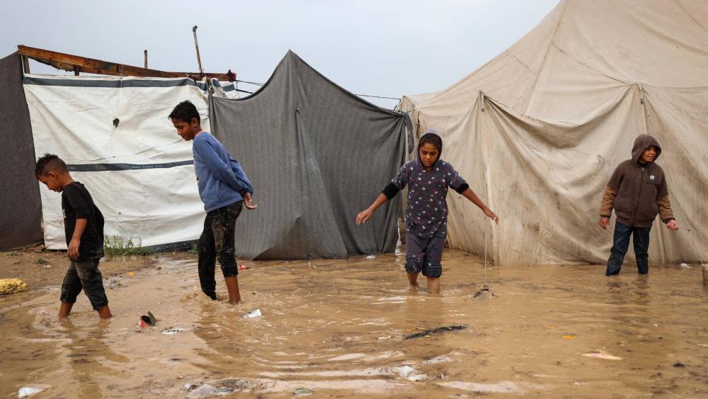 ويواصل المنخفض الجوي العميق "بيرون"، تأثيره على القطاع، فيما وصلت أوضاع النازحين في خيام غزة لمستويات كارثية.