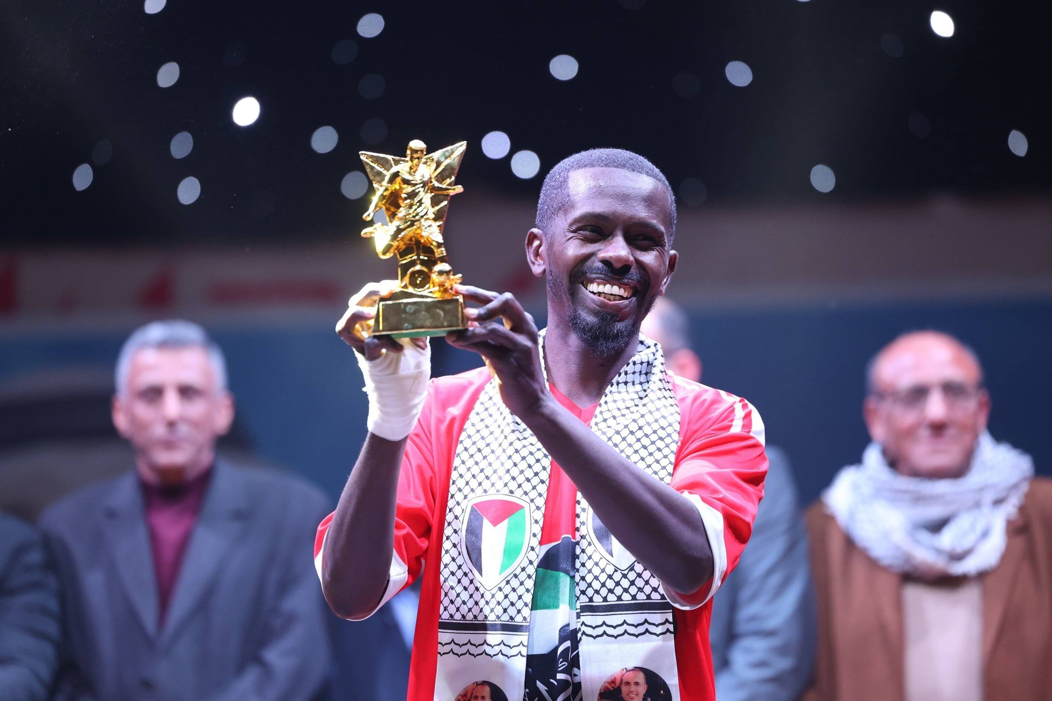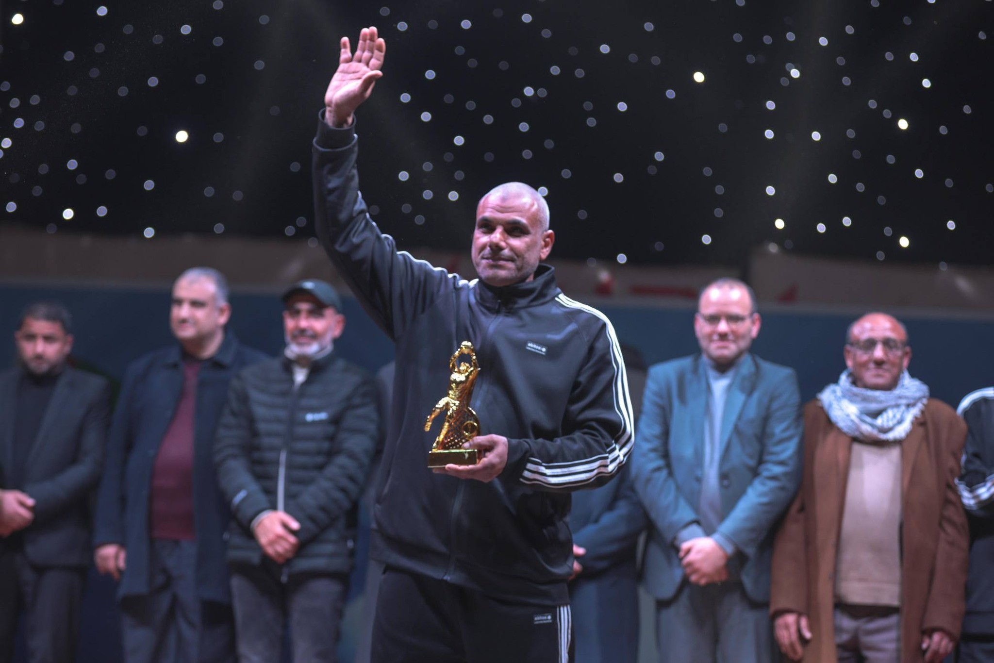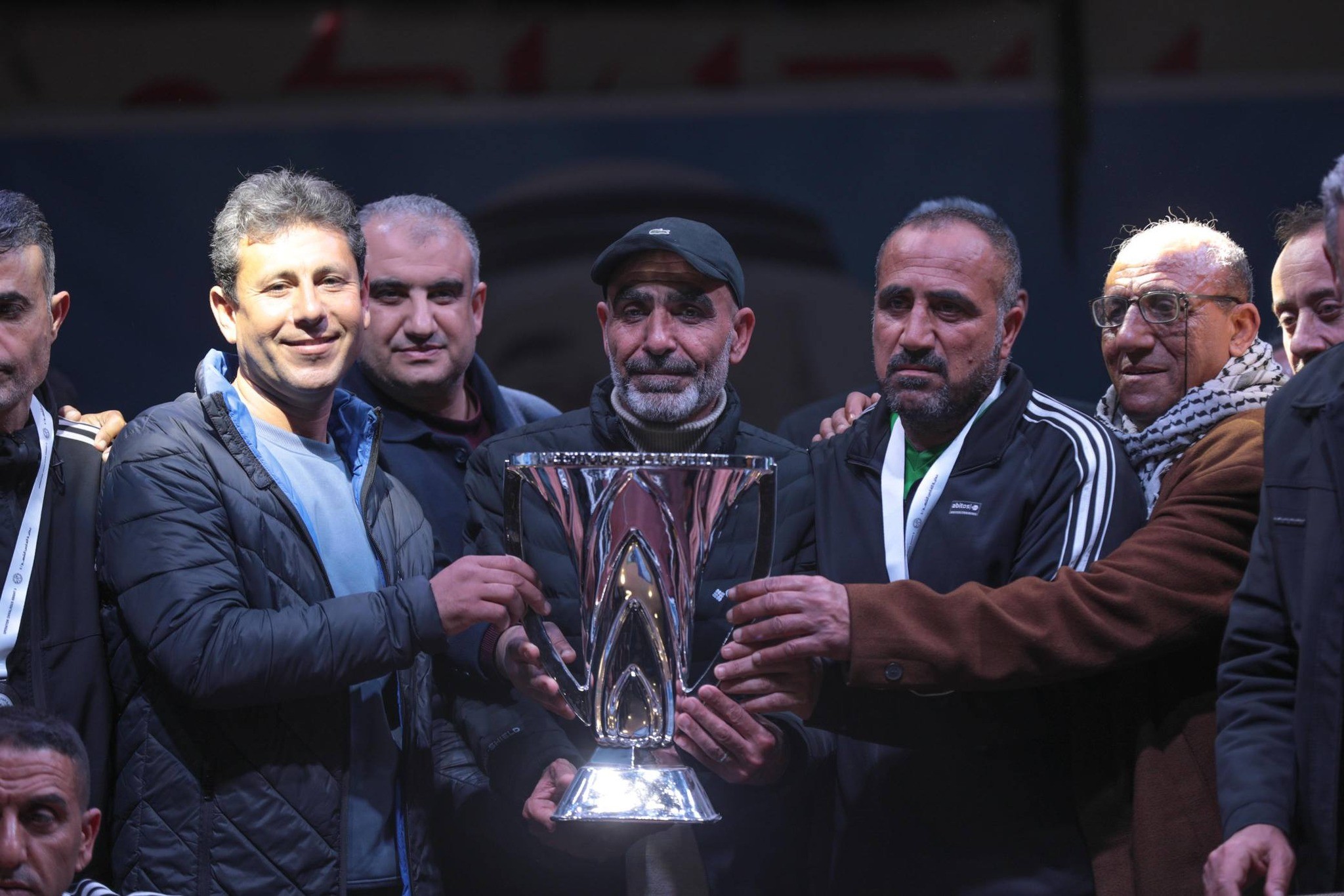 وبعد نهاية المباراة، أُقيم حفل تتويج كرنفالي عاش خلاله قدامى اللاعبين أجواء احتفالية رائعة، حيث اصطفت فرق المربع الذهبي (خدمات المغازي، واتحاد الشجاعية، وغزة الرياضي، وخدمات دير البلح) في طابور عرض مميز إلى جانبهم حكام البطولة، قبل أن يُعزف السلام الوطني الفلسطيني، وتتبع ذلك عروض فلكلورية من الدبكة الشعبية أضفت طابعاً تراثياً جميلاً على الحفل.