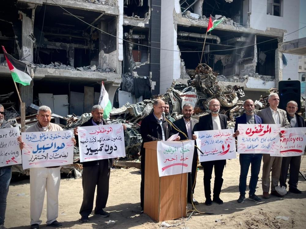 وأكدت النقابة في وقفة احتحاجية لموظفي القطاع العام في غزة ظهر الأحد على جاهزية كافة الأطر النقابية والمؤسسية للتعاون والتنسيق وتسهيل مهام اللجنة، بما يضمن سلامة الإجراءات، ودقة البيانات، ويحفظ حقوق الموظفين دون انتقاص أو تمييز.