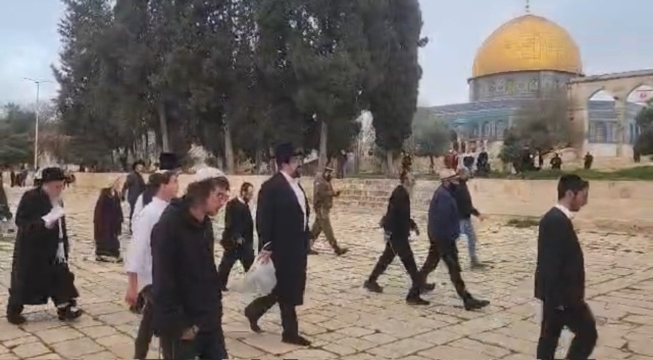 وأدى المستوطنون طقوساً تلمودية علنية في المسجد، في سابقة خطيرة، بعد تمديد فترة الاقتحامات الصباحية من قبل قوات الاحتلال.