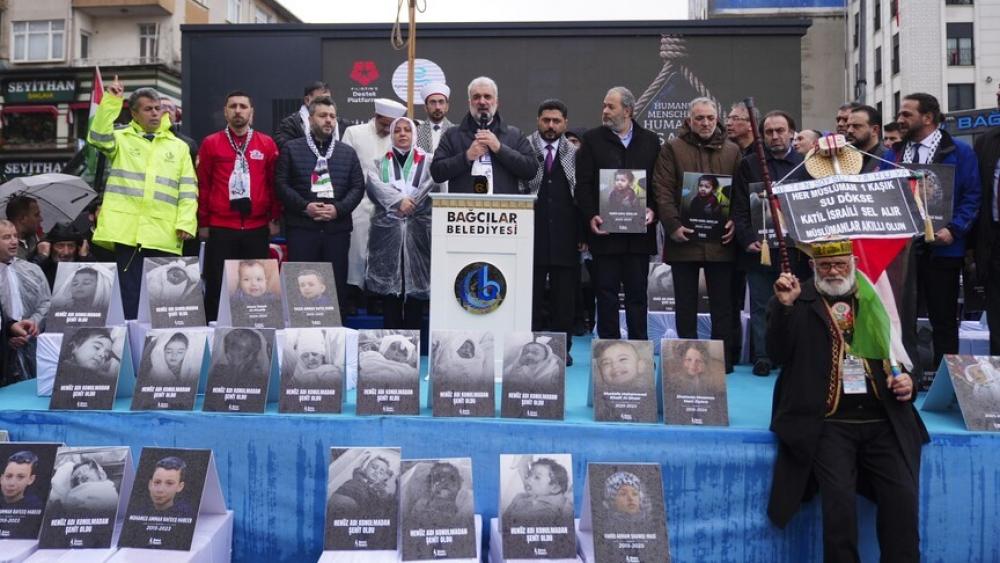 وقال رئيس المنصة عثمان نوري قباق تبه، في كلمته خلال التظاهرة: "سنؤدي صلاة الجمعة في القدس الحرة، عاصمة فلسطين، مع إخواننا الموجودين في ميدان باغجلار، ربما اليوم أو غدًا أو أقرب من ذلك".