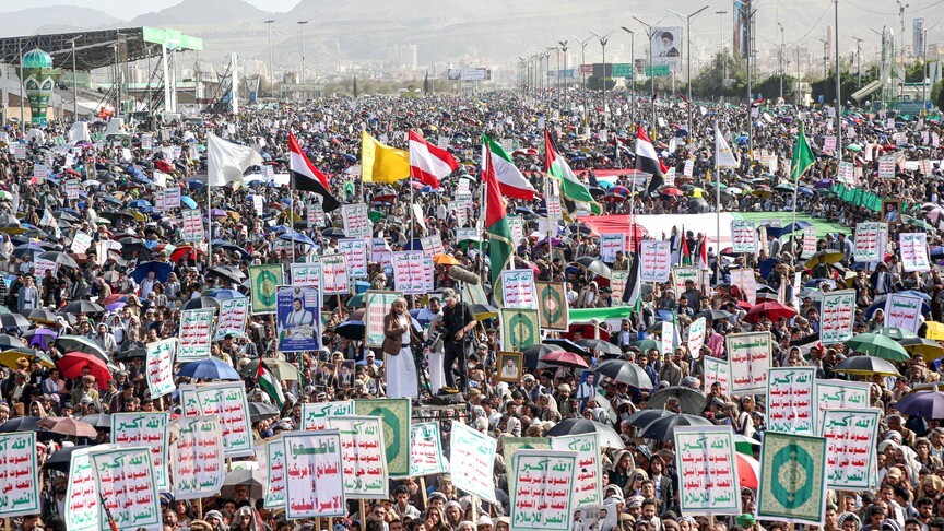 جاء ذلك خلال عدة مظاهرات أقيمت،الجمعة، في العاصمة صنعاء وعدد من المحافظات تحت شعار: "شكرا لله واحتفاءً بالنصر.. ساحاتنا واحدة في مواجهة الصهيونية"، استجابة لدعوة زعيم جماعة الحوثيين عبد الملك الحوثي، وفق الأناضول.