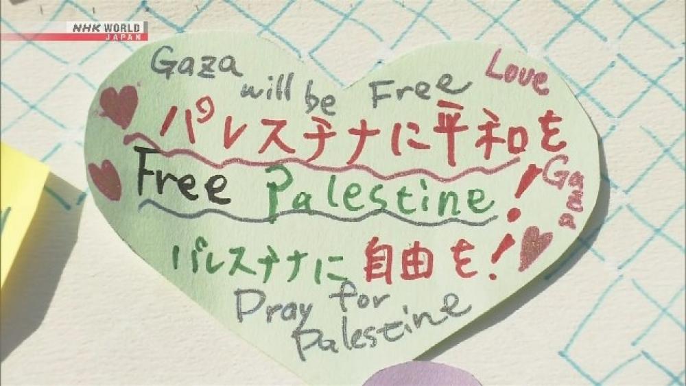 قال أحد المشاركين، في الثلاثينيات من عمره، لقناة NHK إنه يشعر بألم في قلبه كلما شاهد أخباراً عن غزة.