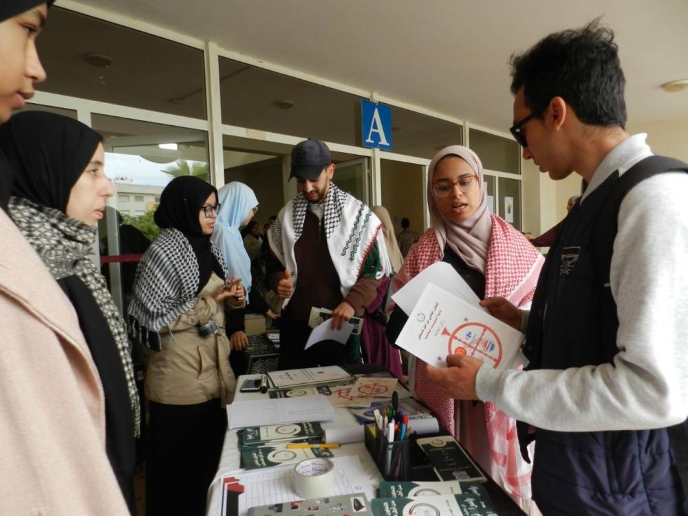 نظم "التعاون الطلابي من أجل فلسطين" في جامعة محمد الخامس بالعاصمة المغربية الرباط يومًا تضامنيًا توعويًا حول القضية الفلسطينية، وذلك في إطار انخراطه في أسبوع مقاومة "الاستعمار والأبارتهايد"،