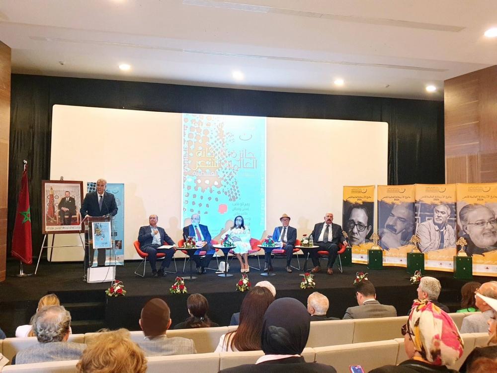 وجرى تسليم الجائزة، التي يمنحها بيت الشعر في المغرب، بدعم من وزارة الشباب والثقافة والتواصل المغربية، ووكالة بيت مال القدس الشريف، في حفل خاص أُقيم في العاصمة المغربية الرباط، بحضور الشعراء الفائزين، وهم: يوسف عبد العزيز، وطاهر رياض، وزهير أبو شايب، فيما تعذّر حضور غسان زقطان لعارض صحي منعه من السفر إلى المغرب.