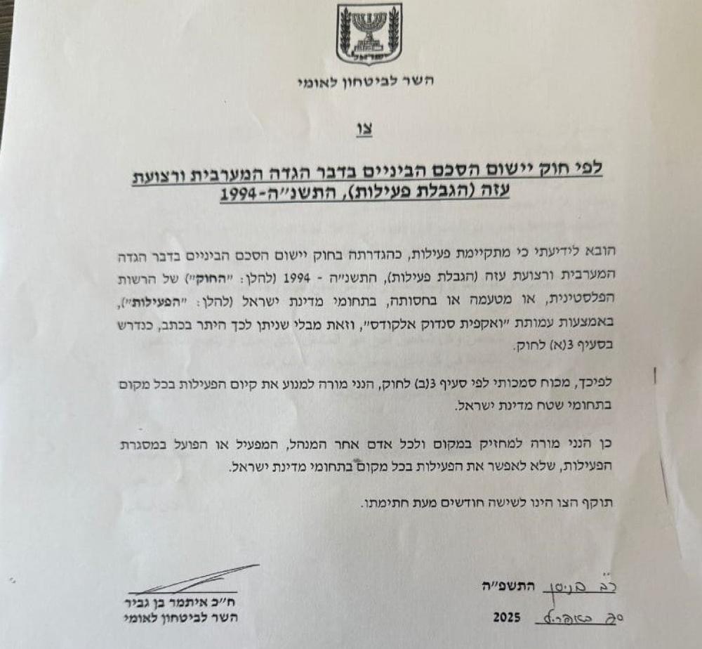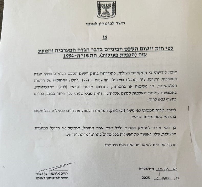 سلمت سلطات الاحتلال الإسرائيلي، يوم الثلاثاء، مواطنًا مقدسيًا قرارًا بمنع السفر.