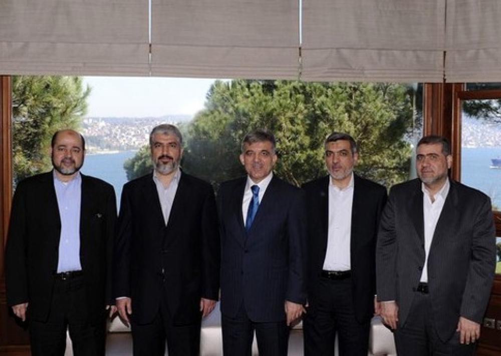 الرئيس التركي غل (وسط) ورئيس المكتب السياسي لحركة حماس خالد مشعل