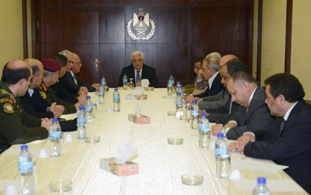 ترأس الرئيس محمود عباس مساء الاثنين بمقر الرئاسة في مدينة رام الله اجتماعا لقادة الأجهزة الأمنية، بحضور أمين عام الرئاسة الطيب عبد الرحيم ووزير الداخلية سعيد أبو علي ومساعد القائد العام لقوى الأمن اللواء الحاج إسماعيل جبر. واستمع عباس لشرح من قادة الأمن حول الأوضاع الأمنية في الأرض الفلسطينية والجهود المبذولة لضمان أمن شعبنا الفلسطيني. وأعطى عباس تعليماته بضرورة الحفاظ على أمن وأمان المواطن، مشيرا إلى أن سياسة الاحتلال هي العمل على توتير الأوضاع وجر المنطقة إلى مربع الفوضى. ولفت الرئيس إلى أن السياسة الأمنية الفلسطينية أثبتت نجاحتها في عدم الانجرار وراء سياسات الاحتلال والحفاظ على أمن ومصالح شعبنا. واتخذت في الاجتماع عدة قرارات وإجراءات لحفظ الأمن في الأرض الفلسطينية.