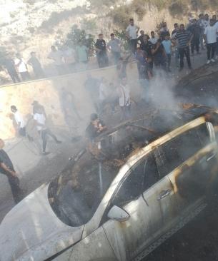 مستوطنون يحرقون مركبة ويهاجمون منازل جنوبي نابلس