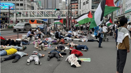 متظاهرون في اليابان يجسدون مشهد ضحايا غزة في المستشفيات