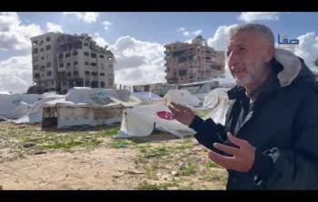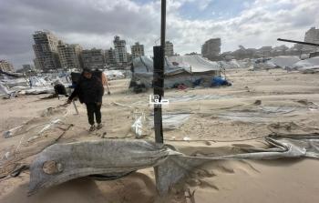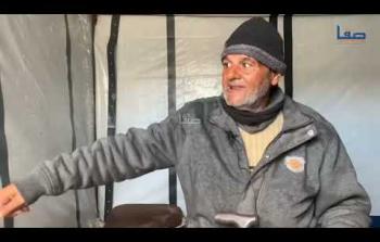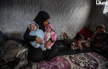 سيدة تعتني بطفليها أحدهما يعاني من ثقب في القلب في خيمة مهترئة في أجواء منخفض جوي حاد بمدينة غزة ديسمبر 29, 2025