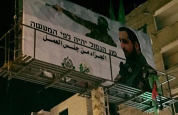 لافتة ضخمة للشهيد فقها وسط مخيم النصيرات