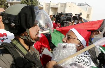 "سانتا كلوز" الفلسطيني يناهض قرار ترمب على طريقته