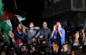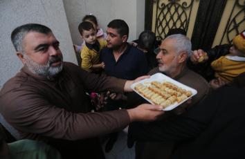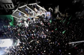 مواطنون يحتفلون أمام منزل هنية بمخيم الشاطئ ابتهاجًا بالإطاحة بليبرمان