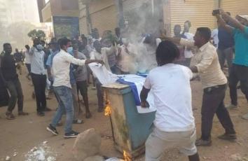 متظاهرون سودانيون يحرقون علم الاحتلال رفضًا للتطبيع