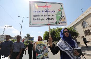 مسيرة جماهيرية غاضبة بغزة تنديدًا باتفاق العار التطبيعي