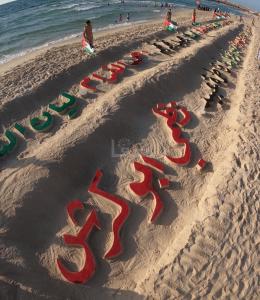 منحوتة رملية بأسماء شهداء العدوان في غزة