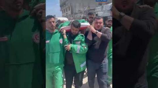 تشييع جثمان الشهيد المسعف إبراهيم صقر الذي ارتقى جراء غارة جوية إسرائيلية استهدفته في غزة