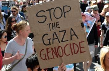 تعليق لافتة "إبادة جماعية" على مبنى القنصلية الأمريكية بسلانيك اليونانية