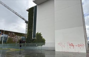 ألمانيا.. مناصران لفلسطين يلطخان مبنى رئاسة الوزراء بطلاء أحمر