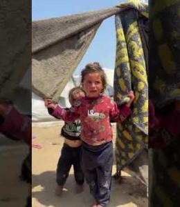 معاناة النازحين بالخيام في بلدة الزوايدة وسط قطاع غزة في ظل موجة الحر اليوم